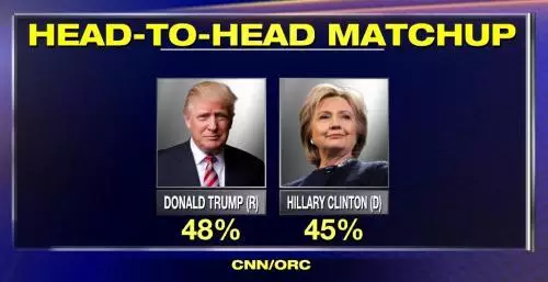 最新民調(diào)顯示,特朗普已經(jīng)以48%的支持率甩下希拉里3個(gè)百分點(diǎn),此前的民調(diào)希拉里一直領(lǐng)先于特朗普。