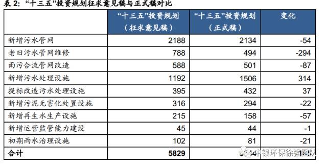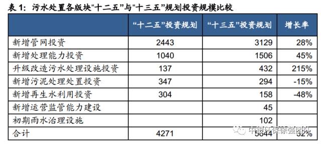 “十三五”規(guī)劃污水處理領(lǐng)域總投資5644億,剔除管網(wǎng)項(xiàng)目后,較“十二五”同期增長(zhǎng)38%