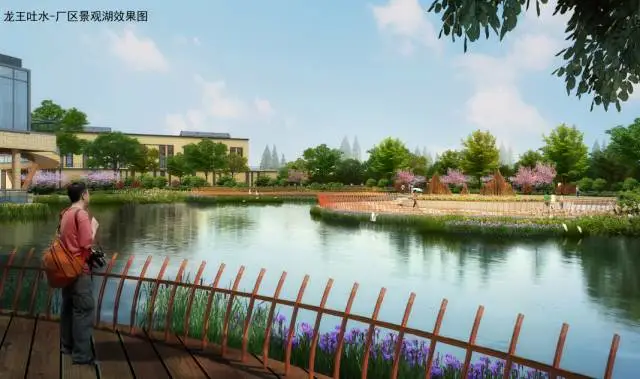 整個(gè)水廠總體布局以龍的造型為骨架,響應(yīng)中原的龍湖文化,廠區(qū)各構(gòu)筑物由北向南隨著龍的身體在兩側(cè)展開(kāi),象征龍的兩個(gè)翅膀,最終以廠前區(qū)的弧形綜合樓構(gòu)成龍首的意向,形成“應(yīng)龍吐水”的意境。
