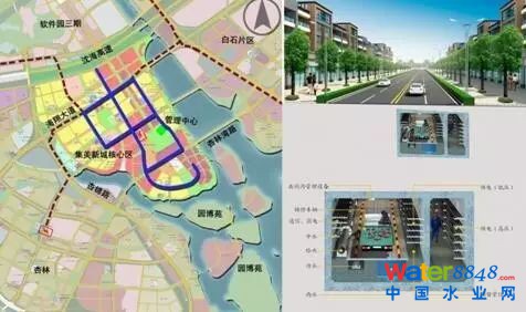集美新城核心區(qū)總規(guī)劃面積4.64 km2,規(guī)劃居住總人口約6.2萬人,中心片區(qū)定位為高尚生態(tài)社區(qū)。核心區(qū)主干路網上布置“三橫三縱一環(huán)”干支線綜合管廊,建設總長度達7.77 km,布置成環(huán)狀、網狀系統(tǒng),輻射到整個片區(qū)。納入管線包括:110kV和220 kV的高壓電纜、10 kV電力、通信電纜(含有線、交通)、給水管、中水管、污水管、雨水管。