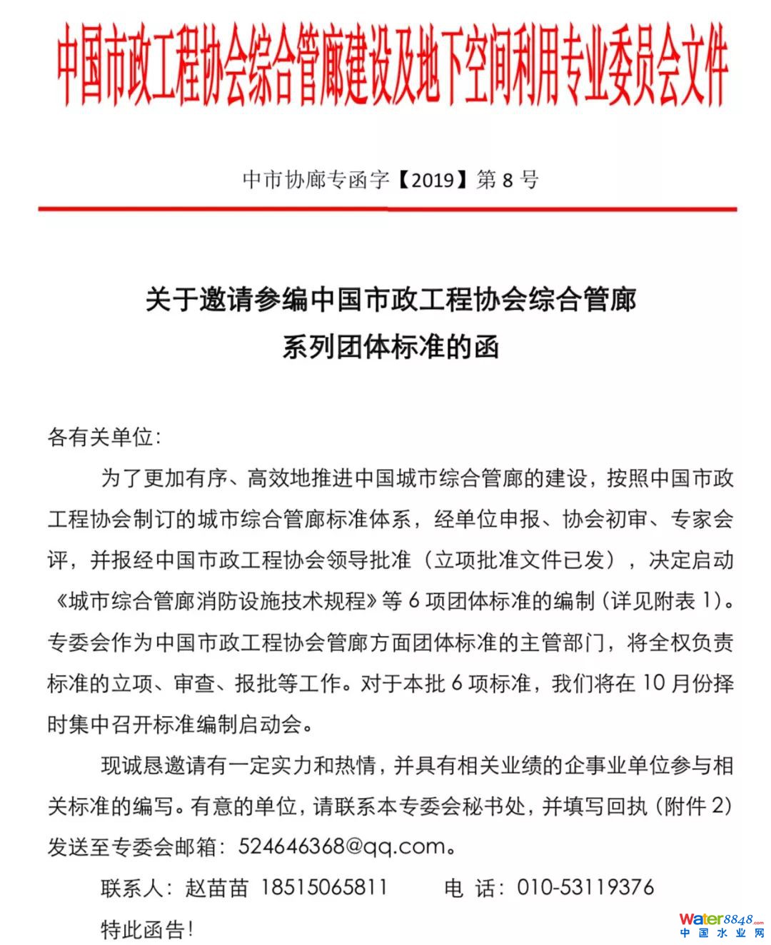 核心提示:參編邀請: 綜合管廊 消防、通風(fēng)、給排水等6項(xiàng)標(biāo)準(zhǔn)