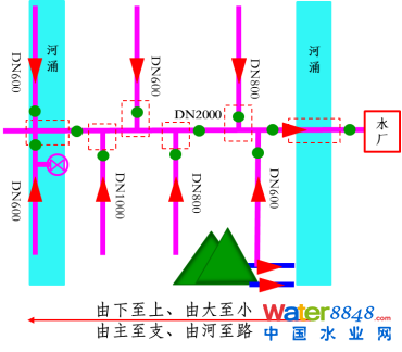 (2) 拉通支管:拉通置業(yè)路南北段,拉通后污水管水位驟降3m左右,且與主管水位變化趨勢一致,水量增加2000m³/d;