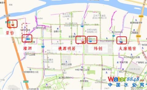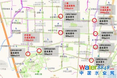 對項目區(qū)域進行全面的河水入侵診斷,成果排查定位河水入侵點9處,其結(jié)果分布如上圖所示,包括: