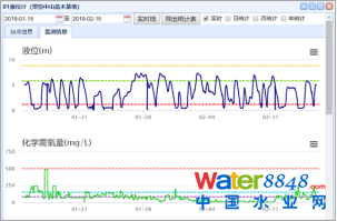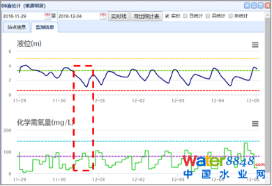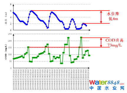 Fig.2 Monitoring curve chart of liquid level and CODcr concentration in inlet sewage pipe