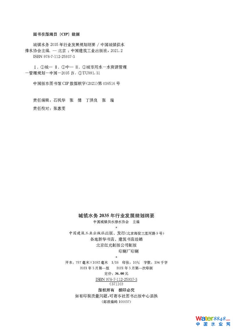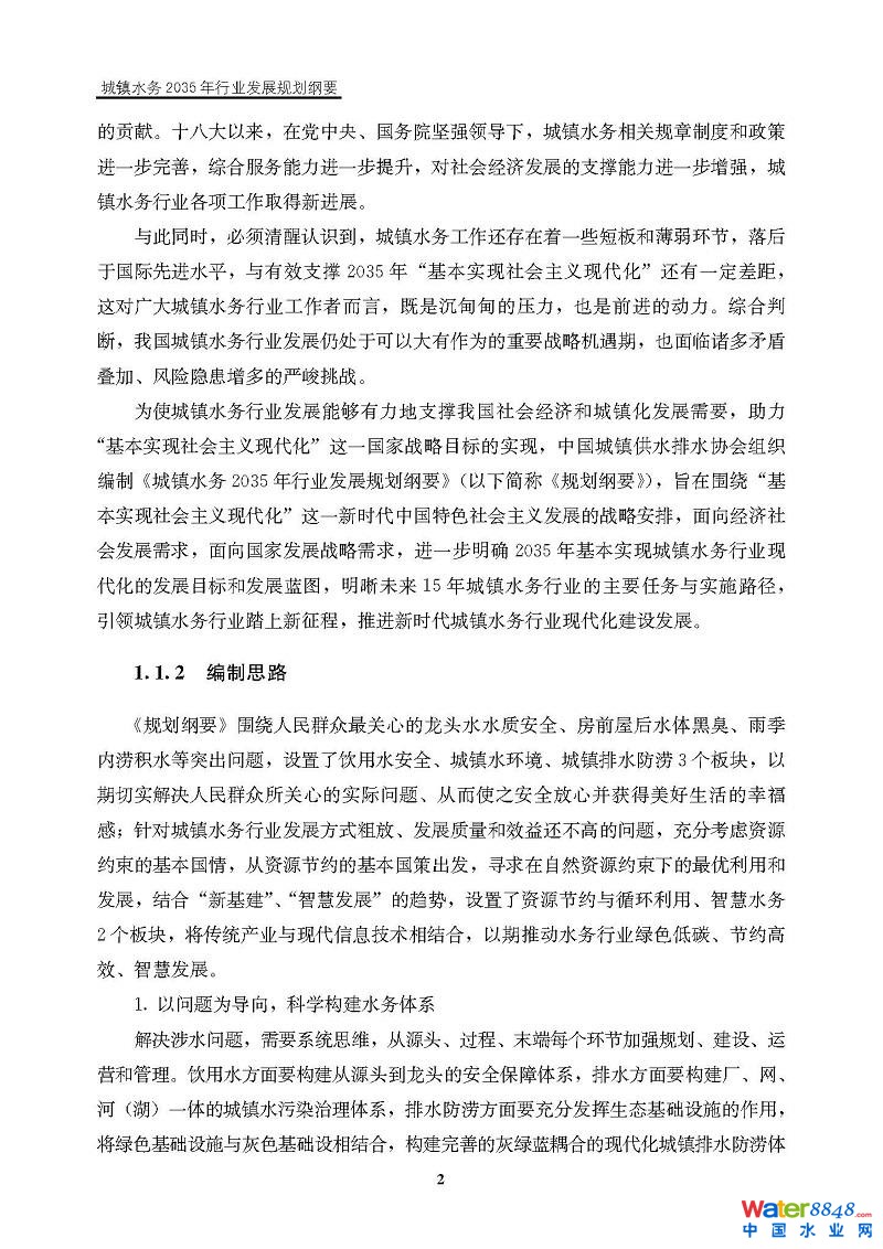 • 《城鎮(zhèn)水務(wù)2035年行業(yè)發(fā)展規(guī)劃綱要》 為