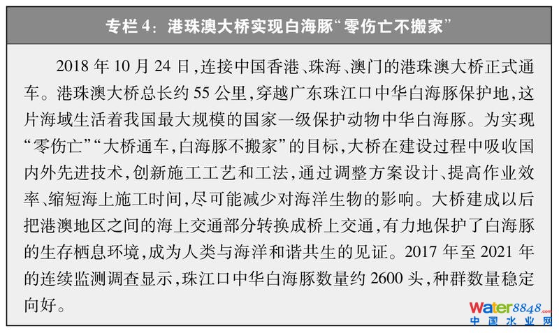養(yǎng)護(hù)海洋生物多樣性。通過保護(hù)生態(tài)廊道、提高物種保護(hù)級(jí)別、開展科研監(jiān)測、重點(diǎn)海域休漁、增殖放流等手段和措施,對海洋生物進(jìn)行積極有效的保護(hù)。目前,中國已記錄到海洋生物28000多種,約占全球海洋已記錄生物物種數(shù)的11%。國家海洋漁業(yè)生物種質(zhì)資源庫收集保藏各類生物資源約14萬份,生物遺傳資源收集保存持續(xù)加快。在近海海域開展增殖放流,每年放流各類水生生物苗種約300億尾。針對重點(diǎn)保護(hù)物種中華白海豚、海龜、珊瑚、斑海豹發(fā)布專門的國家保護(hù)行動(dòng)計(jì)劃或綱要,成立國家級(jí)物種保護(hù)聯(lián)盟,開展卓有成效的工作,種群數(shù)量穩(wěn)定向好。遼寧大連斑海豹國家級(jí)自然保護(hù)區(qū)和廣東惠東港口海龜國家級(jí)自然保護(hù)區(qū)等20處濱海濕地被列入國際重要濕地名錄。
