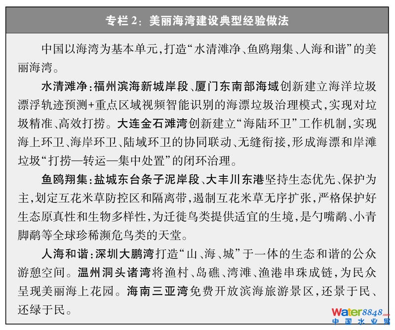 多措并舉建設(shè)美麗海灣。制定美麗海灣建設(shè)的基本標(biāo)準(zhǔn),以海灣環(huán)境質(zhì)量良好、海洋生態(tài)系統(tǒng)健康、人海關(guān)系和諧共生為導(dǎo)向,設(shè)置五類指標(biāo),指導(dǎo)各地開展美麗海灣建設(shè),鼓勵(lì)因地制宜增設(shè)特色指標(biāo)。建立美麗海灣建設(shè)管理平臺(tái),利用現(xiàn)場調(diào)查和遙感監(jiān)測等手段,跟蹤評(píng)估進(jìn)展,推動(dòng)實(shí)現(xiàn)美麗海灣建設(shè)情況智慧監(jiān)管,督促推動(dòng)各級(jí)政府因地制宜開展海灣綜合治理,落實(shí)建設(shè)任務(wù)。建立多元投融資機(jī)制,強(qiáng)化政府引導(dǎo),鼓勵(lì)經(jīng)營主體、社會(huì)資本參與美麗海灣建設(shè)。綜合運(yùn)用財(cái)政投入、專項(xiàng)債、生態(tài)環(huán)境導(dǎo)向開發(fā)(EOD)項(xiàng)目等財(cái)政金融手段,加快推進(jìn)美麗海灣建設(shè)項(xiàng)目落地。加強(qiáng)美麗海灣建設(shè)示范引領(lǐng),鼓勵(lì)美麗海灣建設(shè)制度機(jī)制和關(guān)鍵技術(shù)創(chuàng)新,開展優(yōu)秀案例遴選,推廣示范經(jīng)驗(yàn)?zāi)J,引領(lǐng)提升美麗海灣建設(shè)總體水平。目前,已遴選兩批20個(gè)國家級(jí)美麗海灣優(yōu)秀案例。