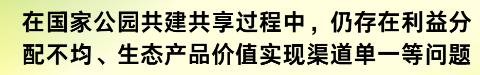 當(dāng)前,各地在國家公園全民共享方面進(jìn)行了有益探索,也找到了國家公園生態(tài)產(chǎn)品價值實(shí)現(xiàn)的有效路徑,但在推進(jìn)全民共享過程中,依然面臨著一些挑戰(zhàn)與困難。
