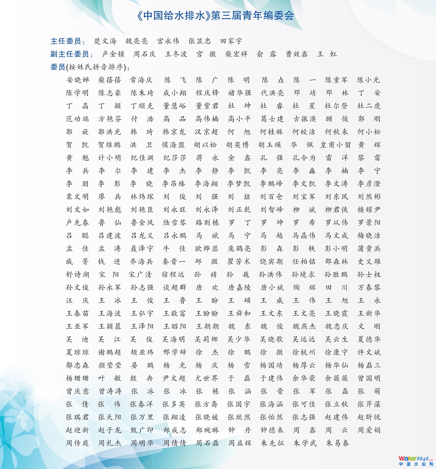 8、彭永臻 9、馬軍 10、季民、李激、赫俊國(guó)、李軍(北工大)、李軍(浙工大)、董文藝、李金河、陳曉華、張曉健、陳同斌 、傅大放、黃志彬(臺(tái)灣)